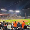 난간땜에 잘 안보일까 싶었는데 생각보다 전체적으로 다 잘보이더라구요 실제로는 사진보다 2~3배정도입니다 안현민선수가 제일 잘보였어요 ㅋㅋㅋㅋㅋ 투구랑 타격 다 잘 보여요!