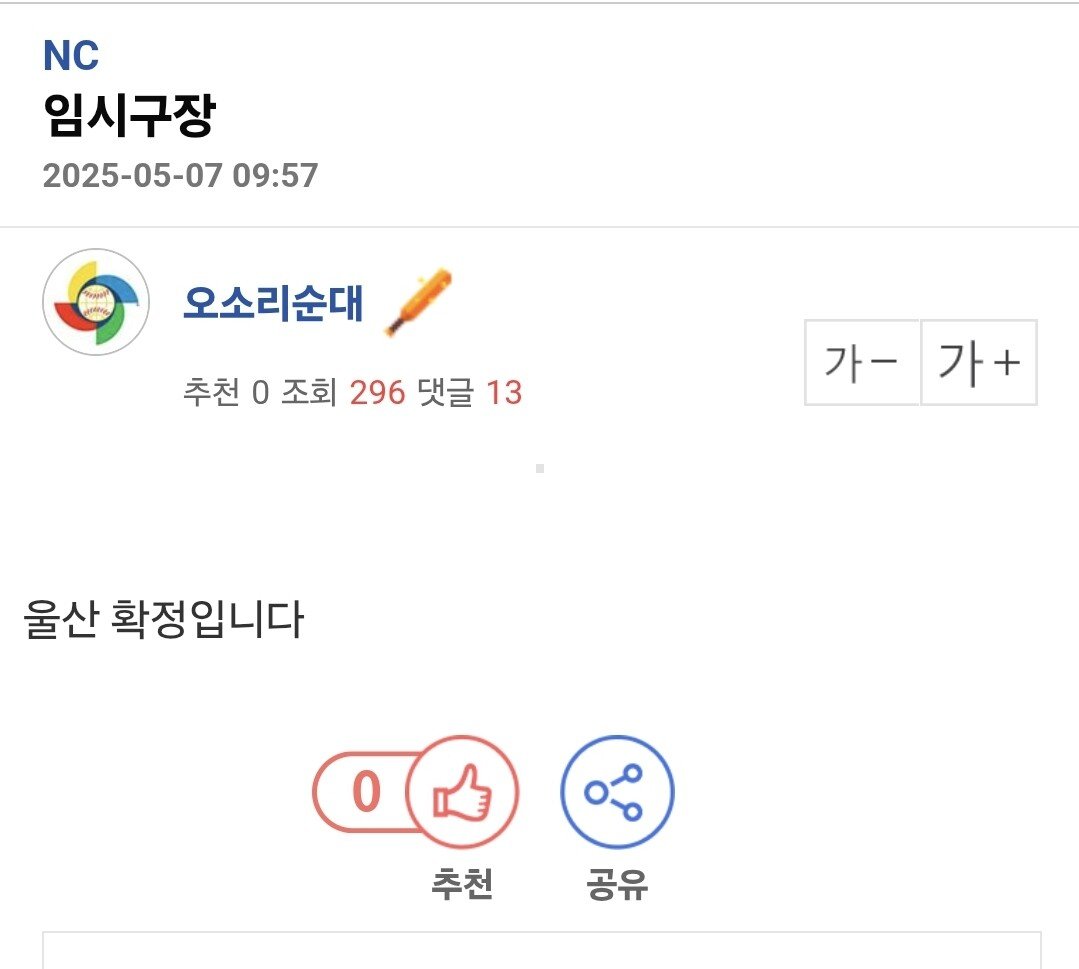 한화이글스팬카페 - 썰) NC 임시 홈구장 - 이미지 1