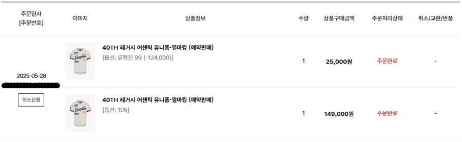 한화이글스팬카페 - 레거시 유니폼 구매 성공 - 이미지 1