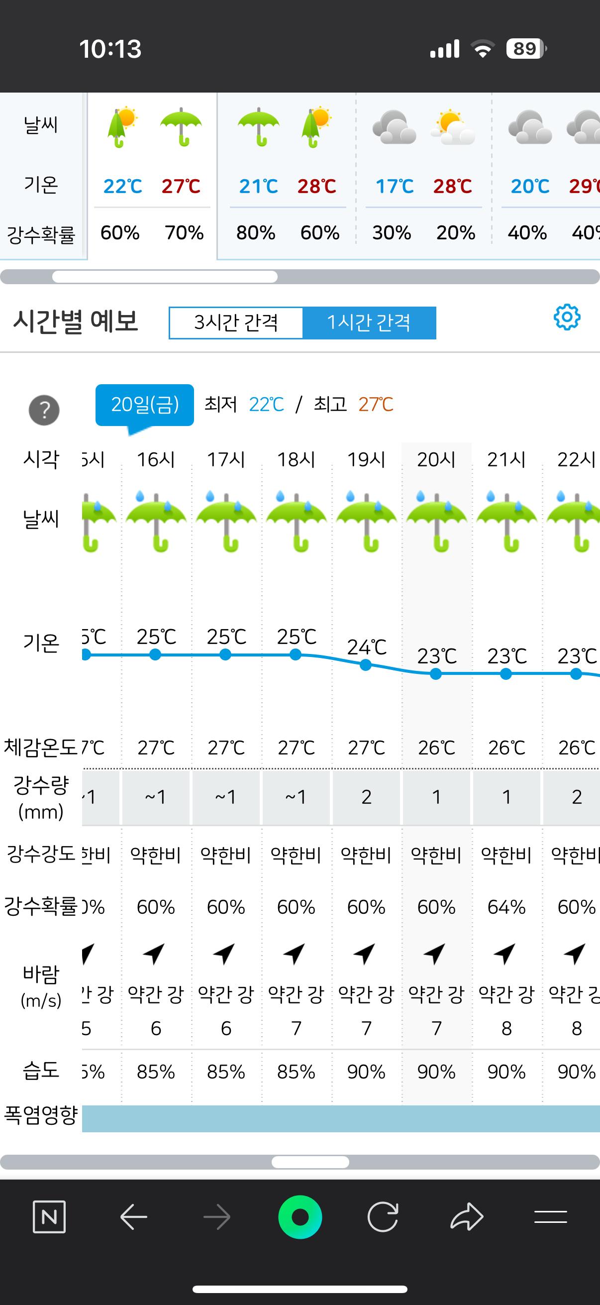 19시 전까지 강수량이 시간당 1mm 미만입니다! 이