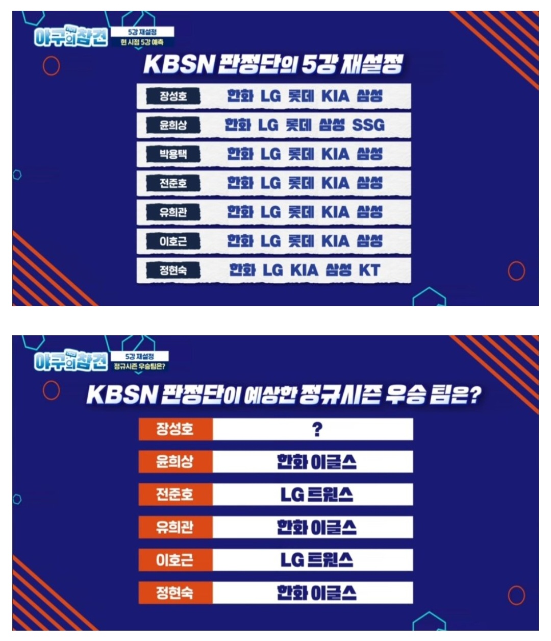 야참. 5강 재설정. 우승팀 예측