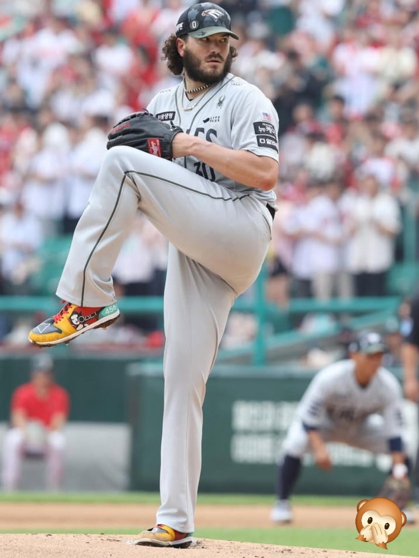 어머머머 폰세선수 신발이 오징어게임? 확대해서 봤지모에요🤣이런 신발은 어디서 구매했을까요?넘 잘 어울리는데요. 폰세 한국사랑 어디못가겠는데요ㅋㅋ