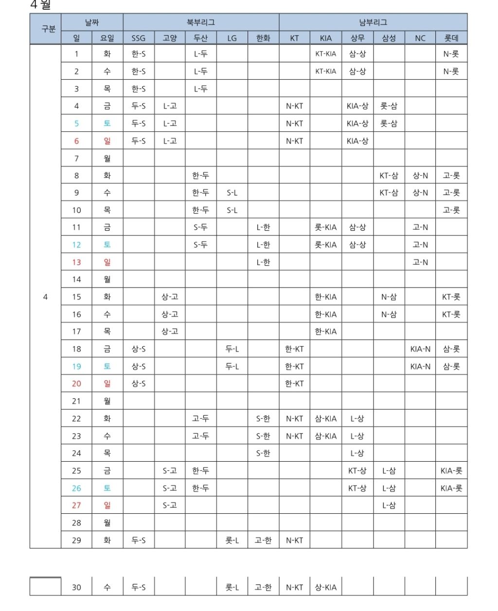 2025 퓨처스리그 경기 일정표