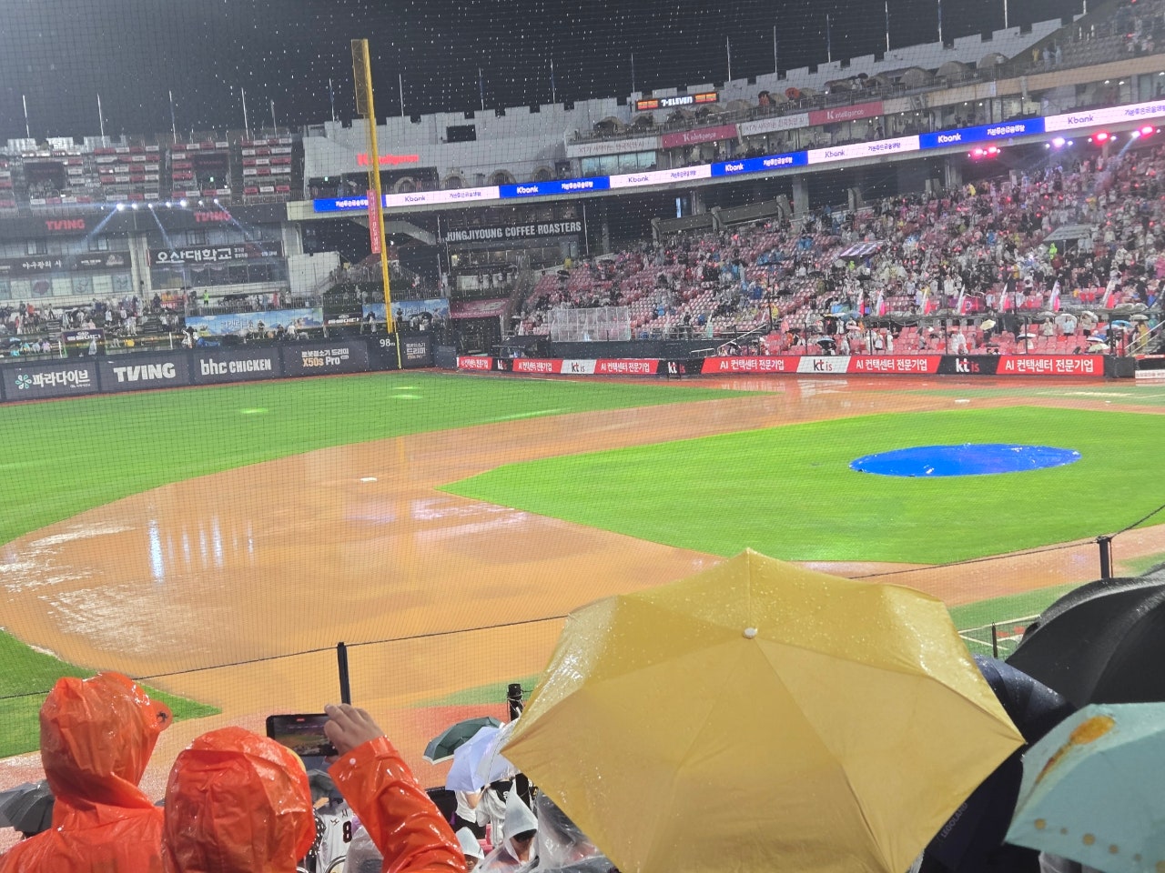 현재 비는 소강상태인데 그라운드가 엉망..