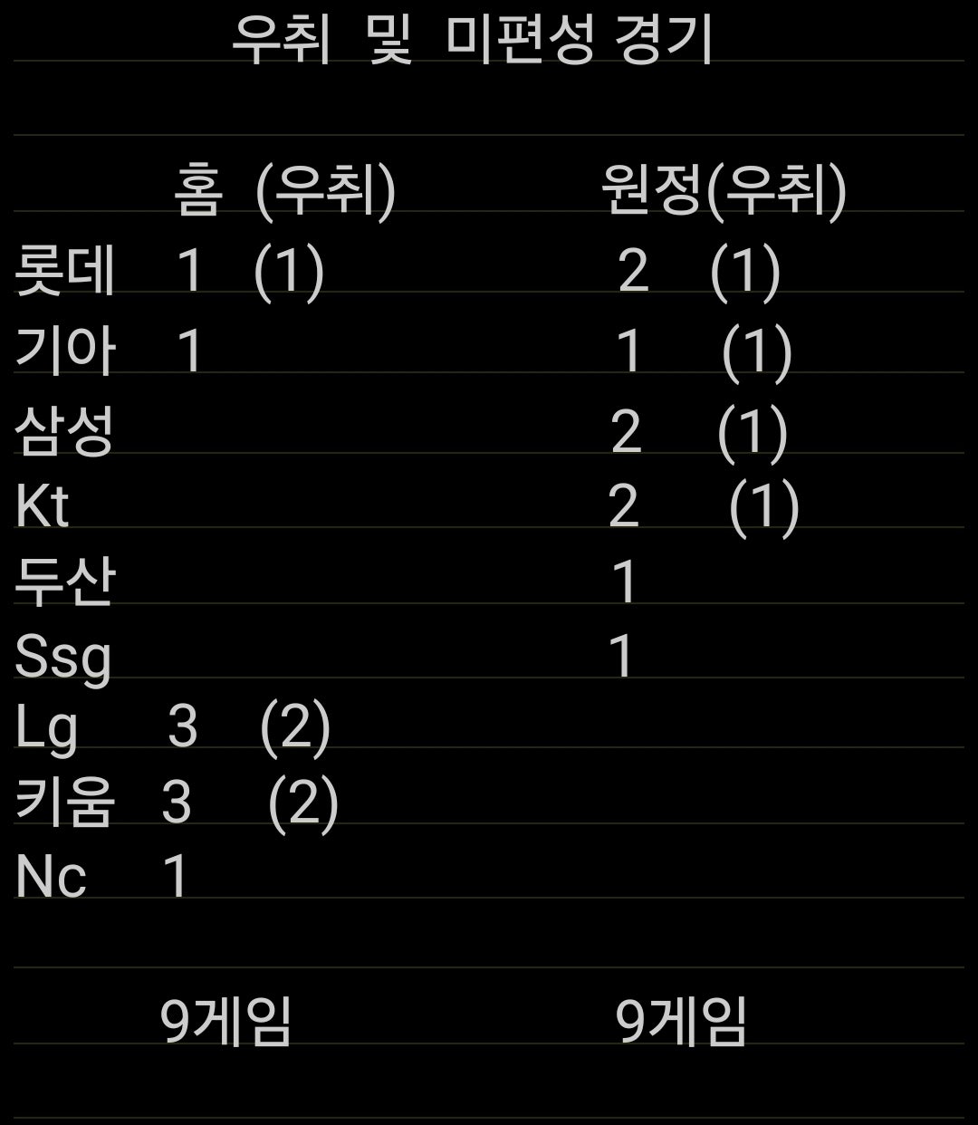 기아 삼성 kt 2경기씩