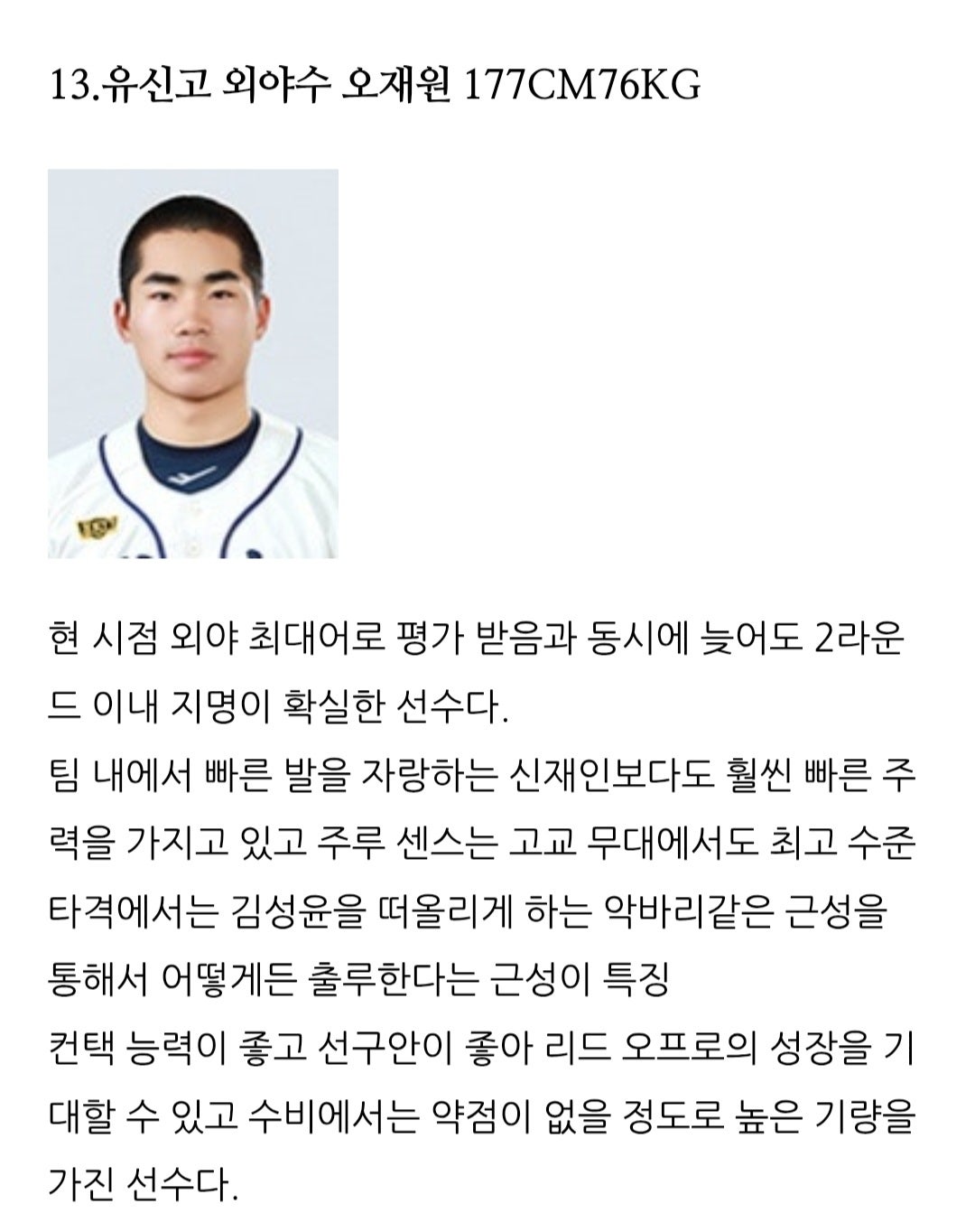 유신고 오재원 (컨텐더 유신고 정수빈, 신일고 박해민)