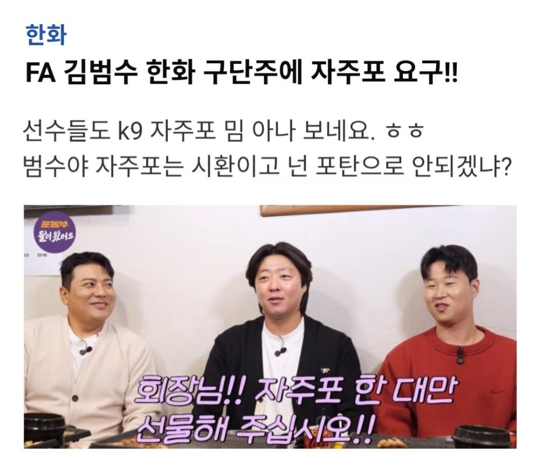 FA 김범수 한화 구단주에 자주포 요구!!